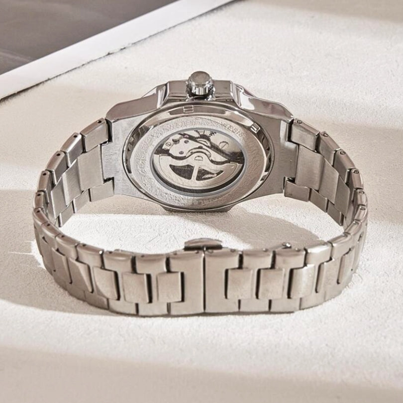 - Transparent Case Back: Showcases the intricate inner mechanics of the automatic movement.